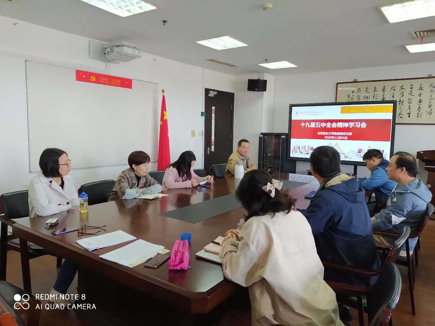 2020年11月3日上午,近现代史纲要党支部在必威BETWAY西汉姆联会议室举行十九届五中全会精神学习会。会上,副院长于凯教授带领全体党员教师学习了全会会议公报,并对其中提到的坚持马克思主义在意识形态领域的指导地位进行深入解读。各位党员表示要不断提高自身知识水平,上好近代史纲要这一门重要的思想政治理论课程,让学生充分了解中国近代史、中国共产党史,努力筑牢思想基础!