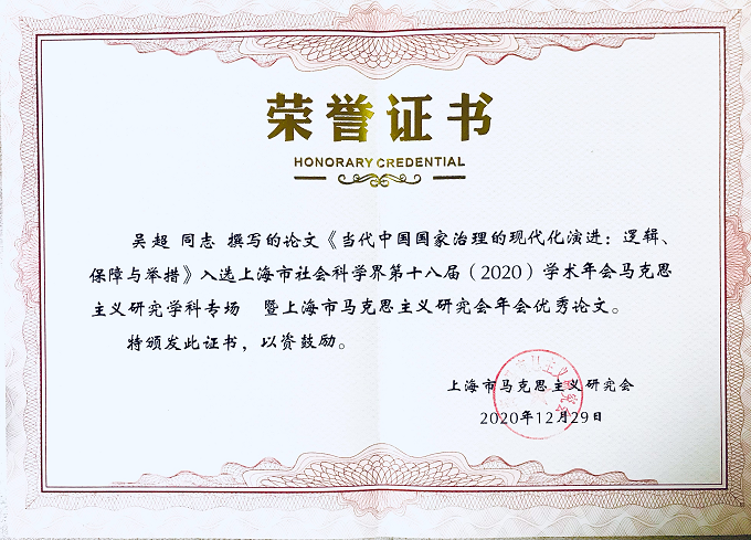 吴超副教授撰写论文获第十八届上海社科联马克思主义研究学科优秀论文