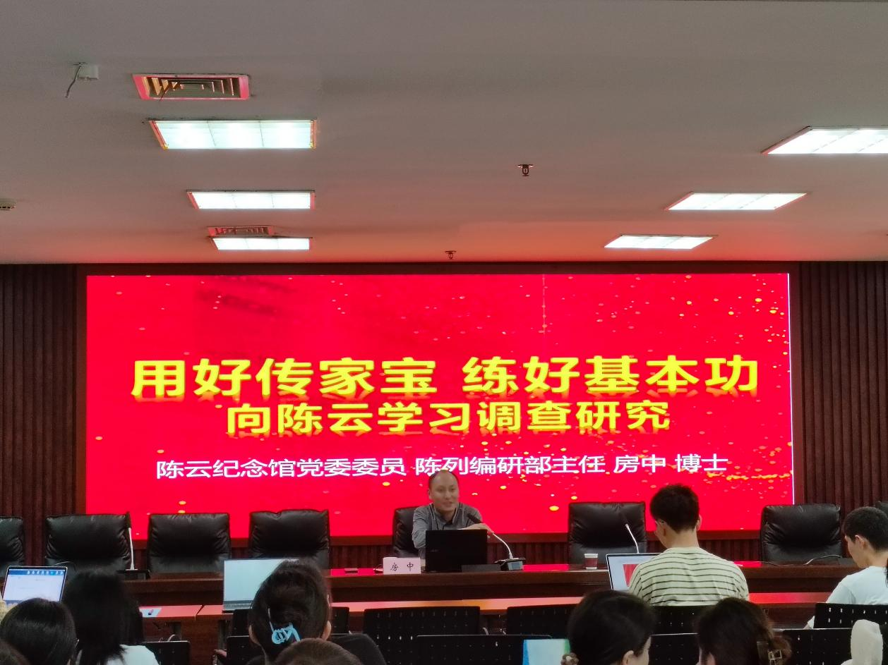 为深入推进习近平新时代中国特色社会主义思想主题教育,强化调查研究意识,提升调查研究本领,拓展马克思主义理论研究的现实视野,2023年6月1日下午,必威BETWAY西汉姆联特邀陈云纪念馆党委委员、陈列编辑部主任房中博士来校为学院师生主讲“陈云与调查研究”专题学术讲座。讲座由必威BETWAY西汉姆联副院长于凯主持,学院研究生和青年教师参加。