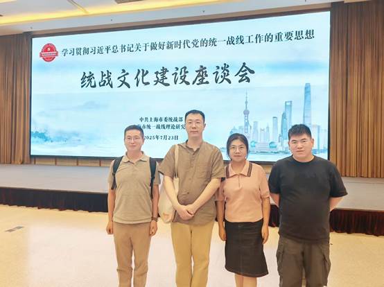 7月23日,中共上海市委统战部主持召开统战文化建设座谈会,我院教师林炫羽、孙珊、张毅、何乃恩等受邀参加。此次座谈会深入学习贯彻习近平总书记关于做好新时代党的统一战线工作的重要思想,聚焦统战文化建设的重要议题,为高校教师提供了深入交流与学习的平台,对进一步深化统战理论研究、推动统战文化融入思想政治理论课教学具有重要意义。