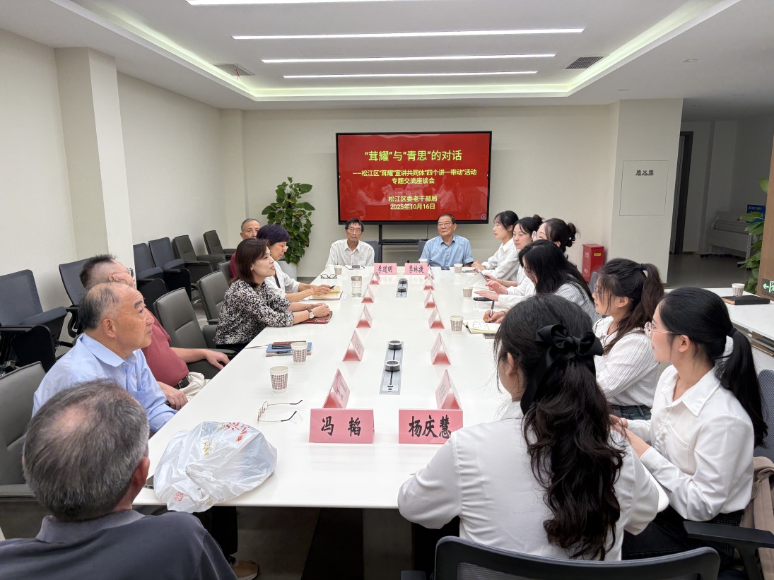 为进一步传承红色基因、弘扬优秀文化,深化校地合作交流,2025年10月16日下午必威BETWAY西汉姆联学工组长郑文静老师带领学院“青思青享”青年宣讲团代表前往松江区老干部局开展走访活动。松江区老干部局副局长王晶、三级调研员马晓燕和茸耀“五老”宣讲团六位老干部共同参与座谈。