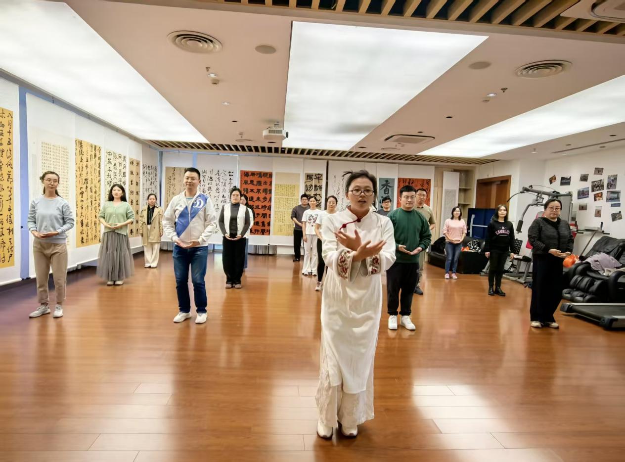 活动现场,学院工会委员邓秋菊老师担任本次活动的教学导师。邓老师以其标准流畅、神形兼备的动作演示,为在场教师们带来了一场精彩的八段锦教学。她从起势开始,逐一分解、示范并讲解了“两手托天理三焦”、“左右开弓似射雕”等八个经典动作。邓老师的讲解深入浅出,不仅传授形之标准,更注重引导大家领悟气之运行与神之凝聚,将八段锦松紧结合、动静相兼的神韵表现得淋漓尽致。