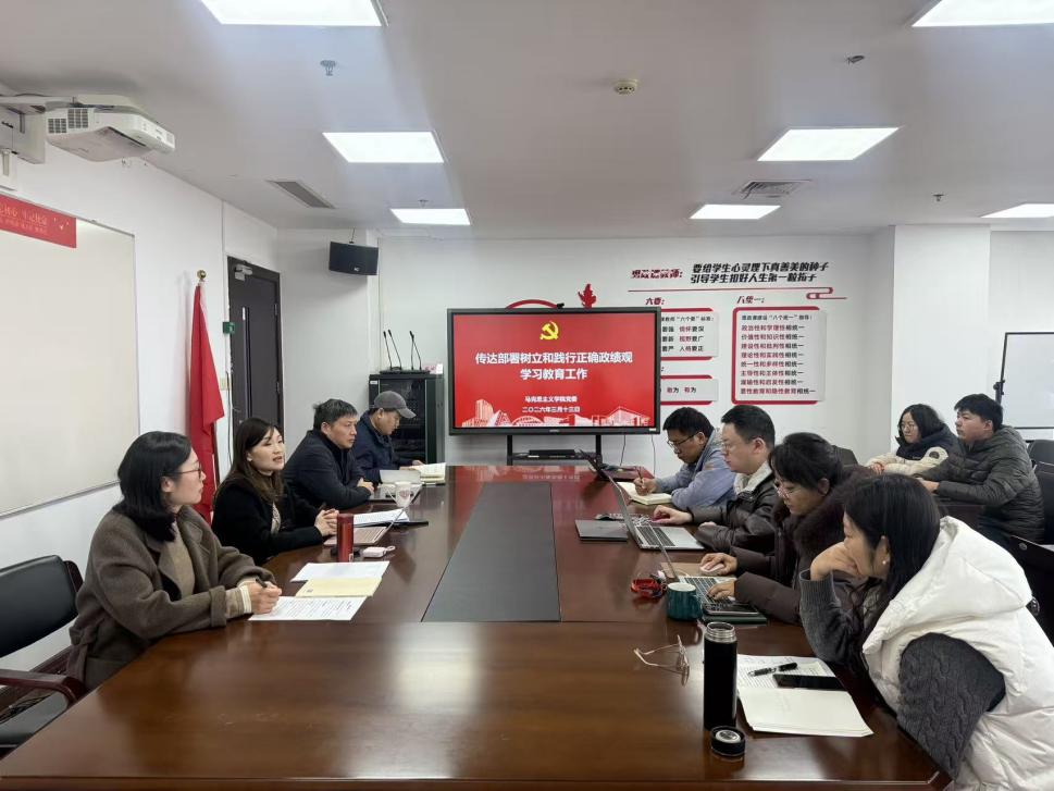 会议指出,在全党开展树立和践行正确政绩观学习教育,是党中央着眼党和国家事业发展全局作出的重要部署,是今年一项重大政治任务。本次学习教育不仅是历次党内集中学习教育的逻辑延续与深度拓展,更是立足新发展阶段对党的建设规律的精准把握。全体党员要持续深化对习近平总书记党建重要论述的理解把握,对标中央要求和学校发展目标,将学习教育与贯彻落实党的二十大及二十届历次全会精神紧密结合,全面践行“立党为公、为民造福、科学决策、真抓实干”的总要求,以高质量党建引领学院事业高质量发展。