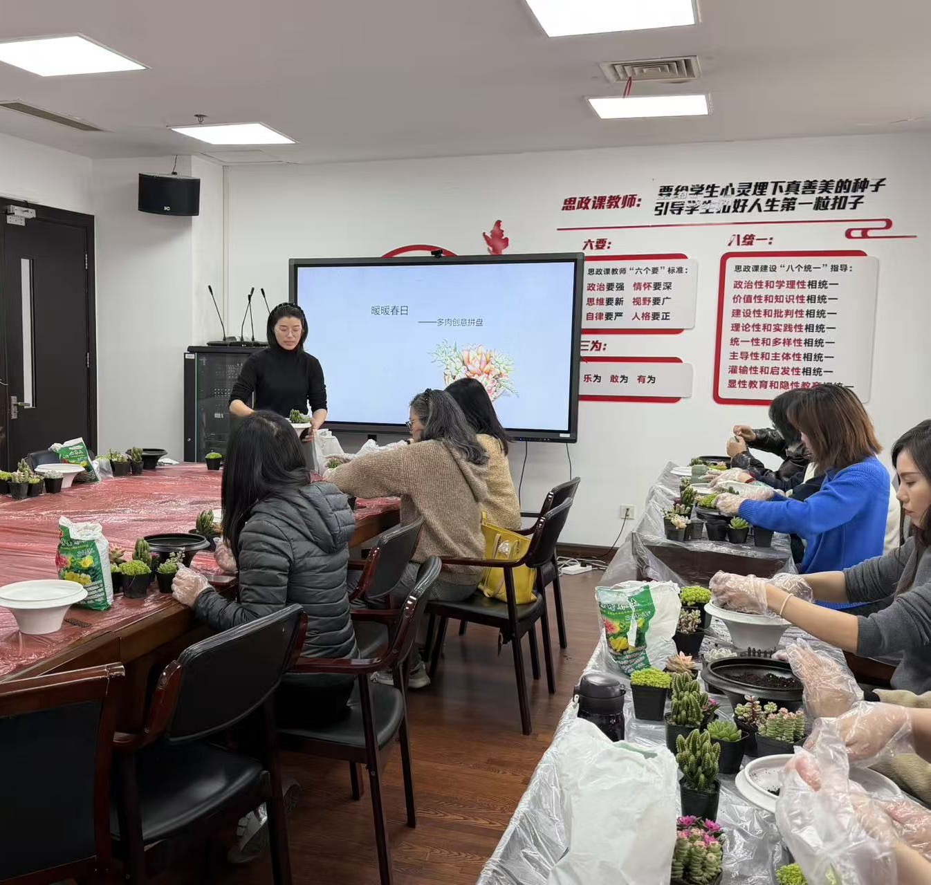 春意渐浓,芳华绽放。为庆祝第116个“三八”国际劳动妇女节,丰富女教职工精神文化生活,3月20日下午,必威BETWAY西汉姆联工会以“巧手植初心·巾帼向春光”为主题,组织开展多肉微景观DIY手作活动,全院女教师欢聚一堂,以绿意致敬巾帼风采,共赴美好春日时光。