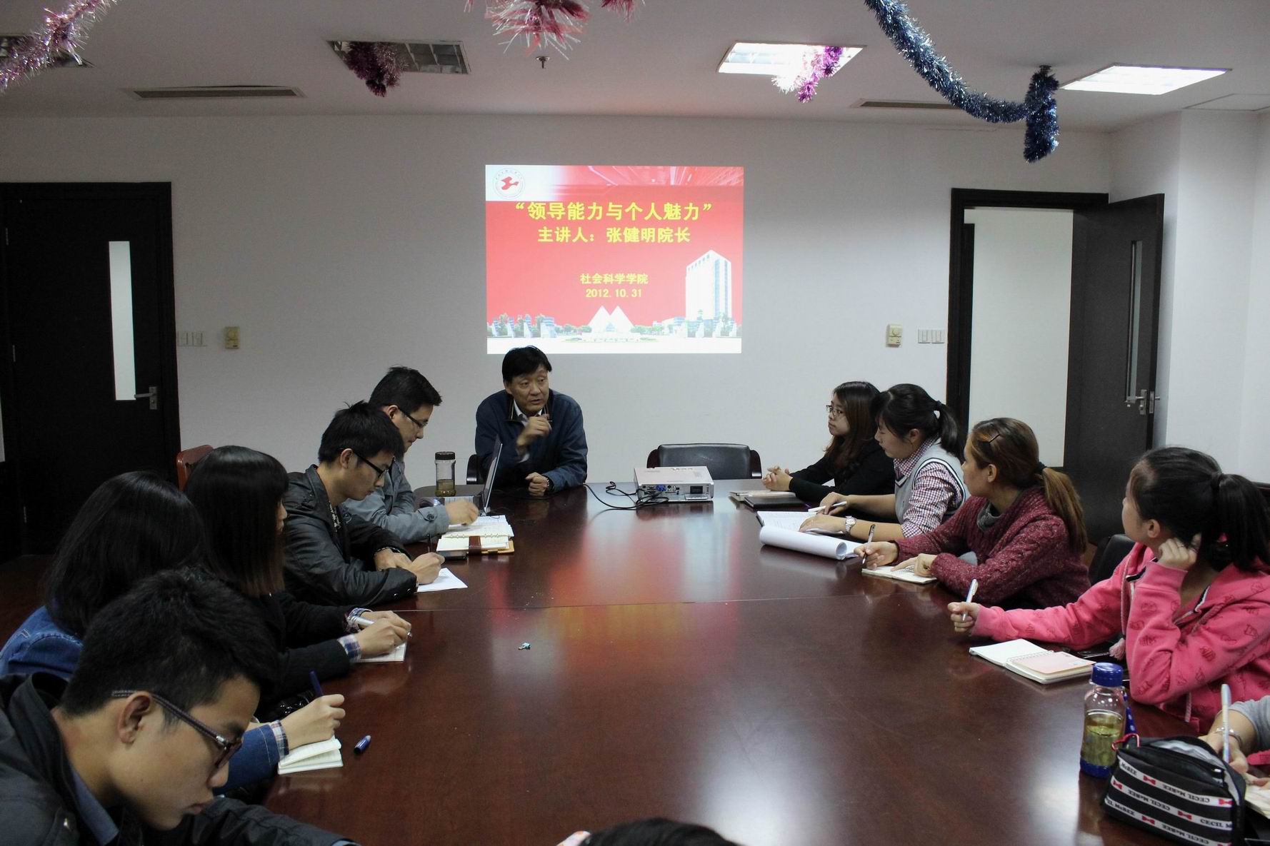 在十八大即将召开之际,马克思主义理论教学部从自身条件出发,注重内涵建设,加强学生培养。为使学院学生干部在思想意识上进一步明确自身职责,认真为同学服务,外塑形象、内强素质,加强自身领导能力,马克思主义理论教学部举办了学生干部培训班,对包括党员、入党积极分子和分团委学生会、班委在内的学生骨干进行重点培养。 张健明院长从“什么是领导才能”、“为什么要培养领导才能”、“如何培养领导才能”等三方面向在座学生讲解。他讲道:“领导既是动词又是名词,领导才能就是用权力因素管理他人、用非权力因素影响他人。人格魅力在领导才能中尤为重要,学生干部要明确四年大学目标,锻炼实践能力、完善专业能力、提升思想境界,成为有人格魅力的人。”培训过程中同学们专心听讲,认真记录。 通过此次培训,学生干部受益良多。特别是大一的班长和团支书,对如何进行班级管理有了全新的认识和体会。此次学生骨干培训班共分为五讲,由社会科学学院分团委精心谋划,得到全院党政的大力支持,为培养大学生特别是学生骨干的综合素质,学院将继续努力。 张健明院长从“什么是领导才能”、“为什么要培养领导才能”、“如何培养领导才能”等三方面向在座学生讲解。他讲道:“领导既是动词又是名词,领导才能就是用权力因素管理他人、用非权力因素影响他人。人格魅力在领导才能中尤为重要,学生干部要明确四年大学目标,锻炼实践能力、完善专业能力、提升思想境界,成为有人格魅力的人。”培训过程中同学们专心听讲,认真记录。 通过此次培训,学生干部受益良多。特别是大一的班长和团支书,对如何进行班级管理有了全新的认识和体会。此次学生骨干培训班共分为五讲,由社会科学学院分团委精心谋划,得到全院党政的大力支持,为培养大学生特别是学生骨干的综合素质,学院将继续努力。 |
