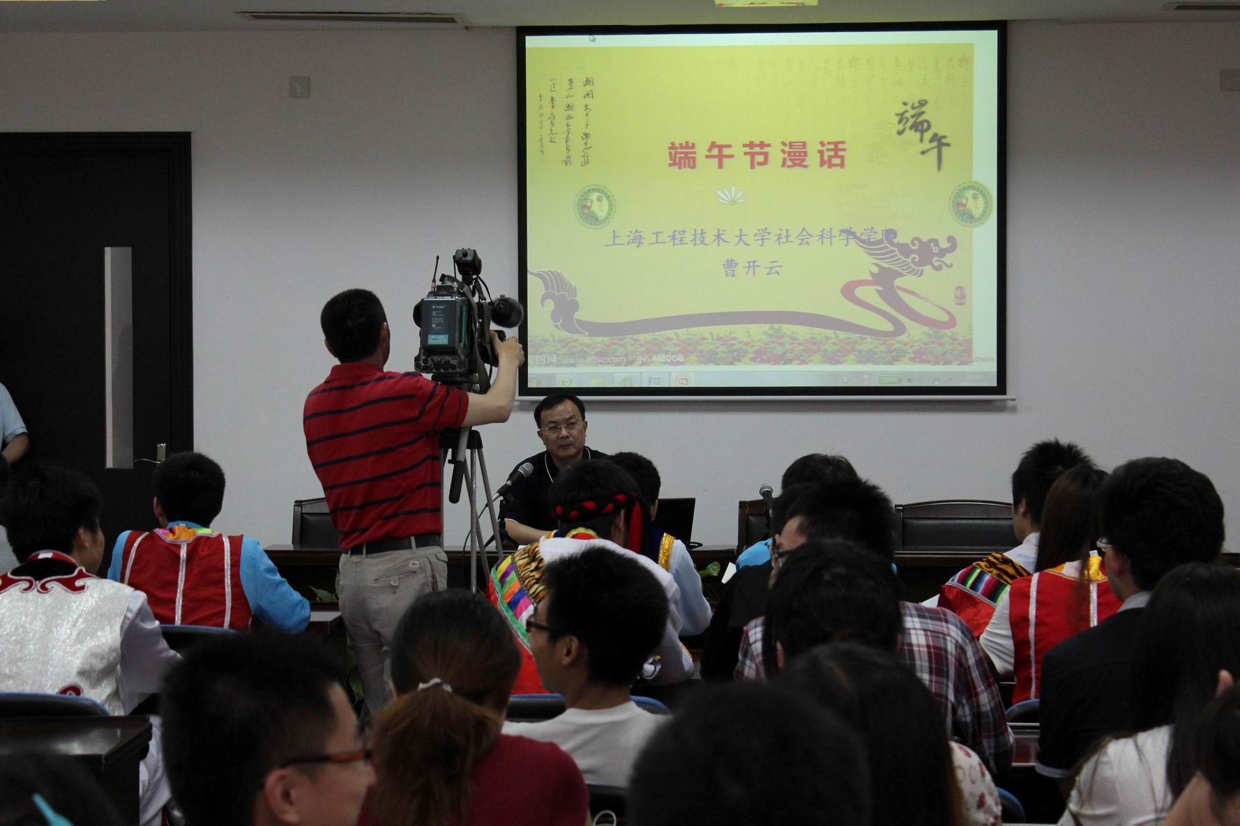 上午10点,由曹开云老师为全体同学所作的漫话端午的报告会在行政楼205隆重举行。曹老师代表学院向全体民族同学和外地同学表达了节日祝贺,并介绍了端午节的由来、民族传统文化的继承和发扬以及全国各民族的端午节风俗等内容,为全体同学上了一堂生动有趣的民俗文化课。