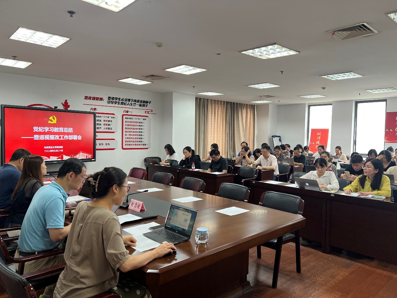 2024年9月20日,必威BETWAY西汉姆联在行政楼1112会议室,召开党纪学习教育工作总结暨巡视整改工作部署会,传达学习贯彻习近平总书记关于党纪学习教育的重要指示精神,落实党中央《关于推进党纪学习教育常态化长效化的意见》,回顾总结学院党纪学习教育开展情况,推进党纪学习教育常态化长效化机制。会议由学院党委书记董旖旎主持,学院领导班子成员、全体教师参加会议。
