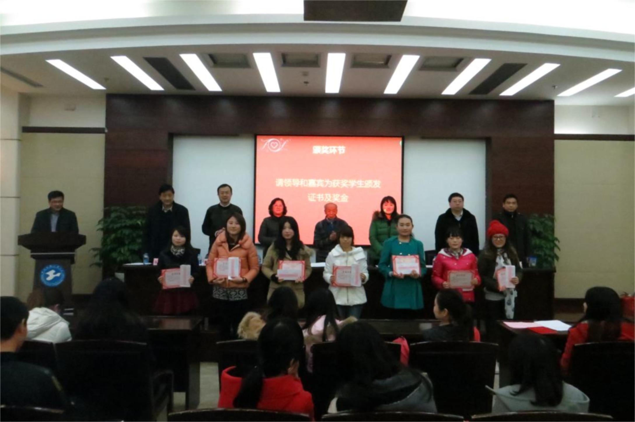 为鼓励在校学生勤奋学习、自强自立,积极参加社会公益活动,松江区交通运输管理局执法大队、移康智能科技有限公司以及松江区百姓义工为民服务中心在社会科学学院设立“交安杯”交通安全奖学金、“移康智能杯”以及“解放”奖学金等三个社会奖学金。12月26日上午,2013年度社会科学学院“交安杯”、“ 移康智能杯”以及“解放”奖学金颁奖大会在校图文信息中心第三报告厅隆重举行,出席本次会议的领导及嘉宾有校学生处副处长黄文洁老师、社会科学学院党总支书记曹开云老师、社会科学学院院长张健明老师、辅导员张强老师以及来自松江区交通运输管理局执法大队骆津政委、松江区百姓义工为民服务中心理事长吴晖先生、移康智能科技有限公司经理朱林清先生、原兰州交通大学教授张柏馨先生,本次会议由张强老师主持。