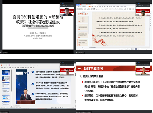 各项目负责人首先使用PPT演示讲解项目建设情况、完成指标情况、项目成果和经费使用情况等,专家再分别从立项背景及项目建设目标、研究创新性及可行性、预期成果形式等方面对18项教学建设项目展开全方位多角度的评点与指导。