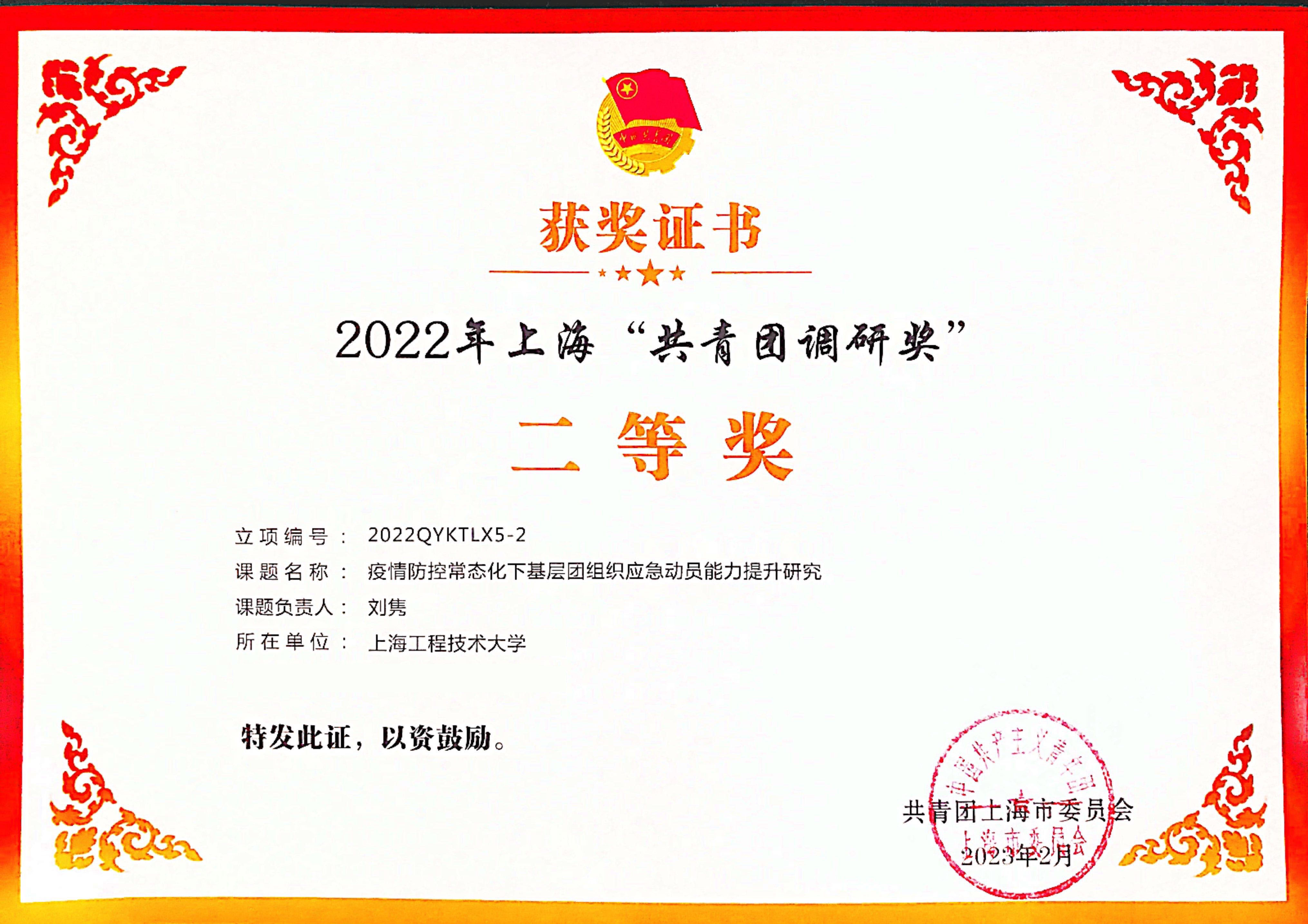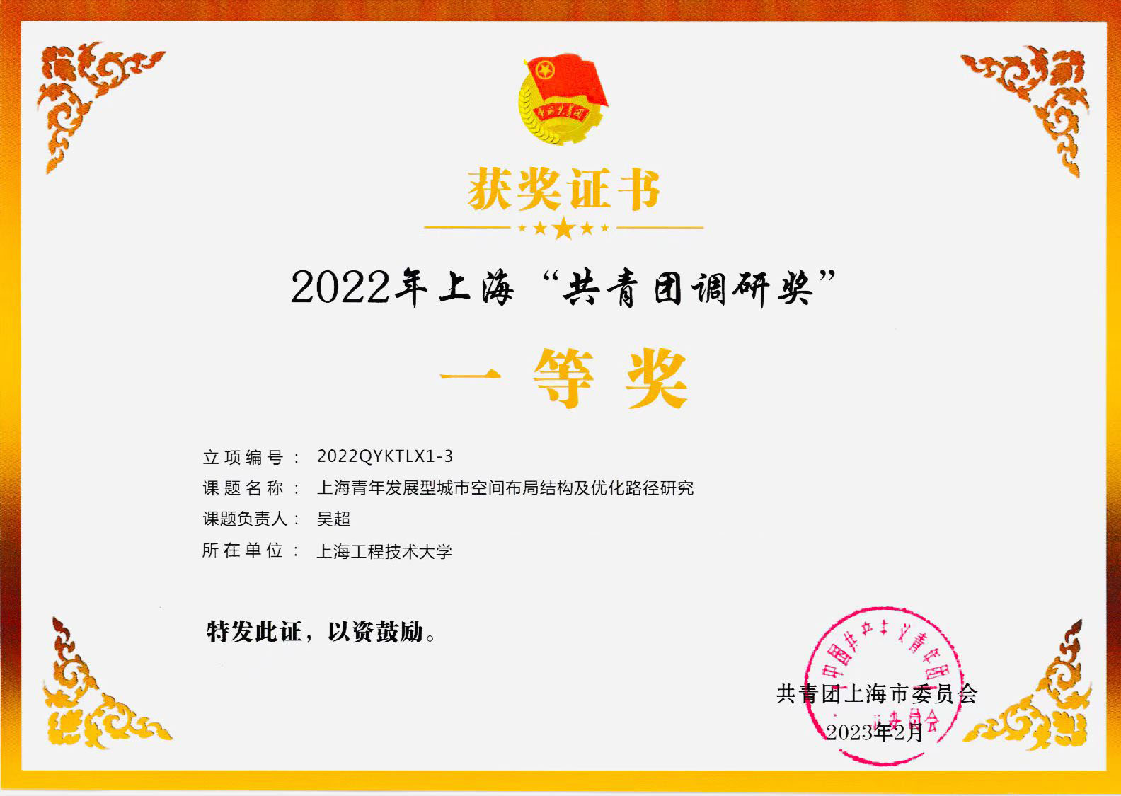 近日,由共青团上海市委员会组织的2022年“上海共青团调研奖”评选结果公布,必威BETWAY西汉姆联吴超教授主持完成的《上海青年发展型城市空间布局结构及优化路径研究》获得一等奖,必威BETWAY西汉姆联刘隽副教授主持完成的《疫情防控常态化下基层团组织应急动员能力提升研究》获得二等奖。