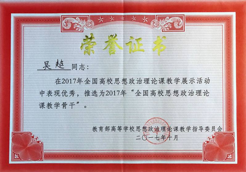 近日,必威BETWAY西汉姆联·社会科学学部吴超副教授被教育部高等学校思想政治理论课教学指导委员会“中国近现代史纲要”分教指委推选为2017年“全国高校思想政治理论课教学骨干”。
