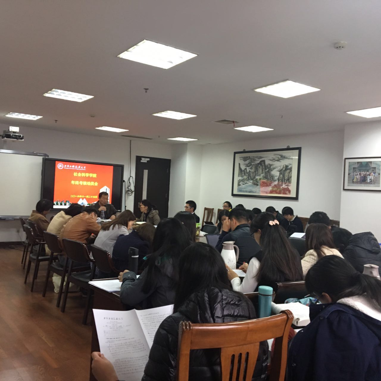 2016年11月25日社会科学学院召开年度总结启动会,曹开云书记、张建明教授、教学副院长邱梦华老师以及全体社科学院教师参加会议。